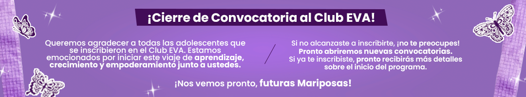 El Club EVA es un proyecto de psicoeducación enfocado en la prevención de la violencia sexual. Este programa no constituye ni reemplaza un proceso psicoterapéutico